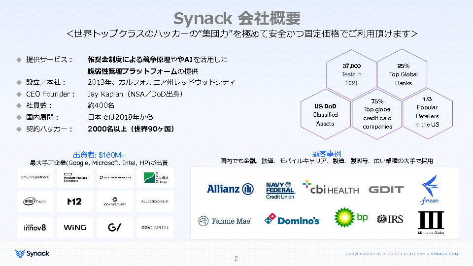 15:05~15:45 従来のセキュリティテストで網羅できない攻撃を洗い出す~米国政府も採用した、次世代型セキュリティテスト「Synack」の紹介〜