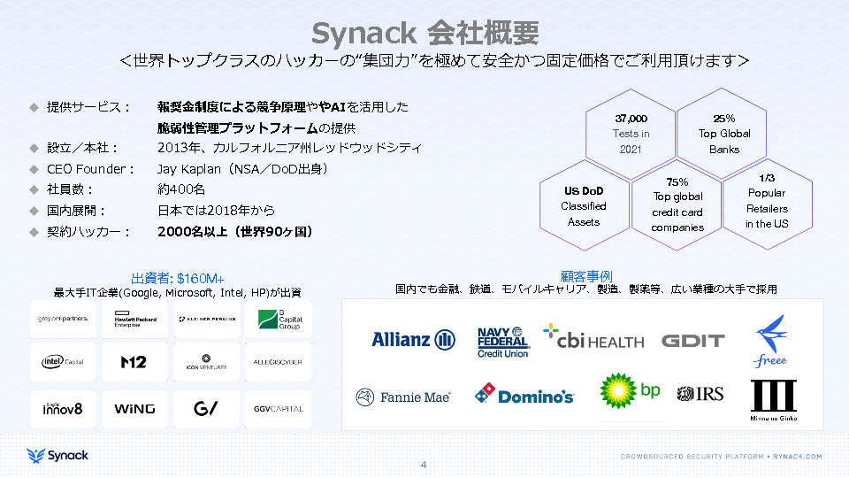 10:20~10:50 世界最高峰のリアルハッカー集団を活用した脆弱性対策~米国政府も採用、脆弱性診断・ペネトレーションテストを大胆に変革する方法~