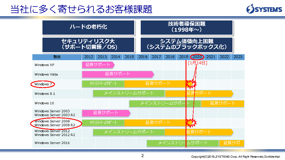 また、マイグレーションを担当した株式会社システムズからは、Windows 7 とWindows Server 2008 のサポート終了に向けてどう対策するべきなのかについて、解説します。