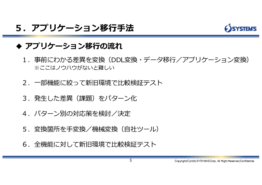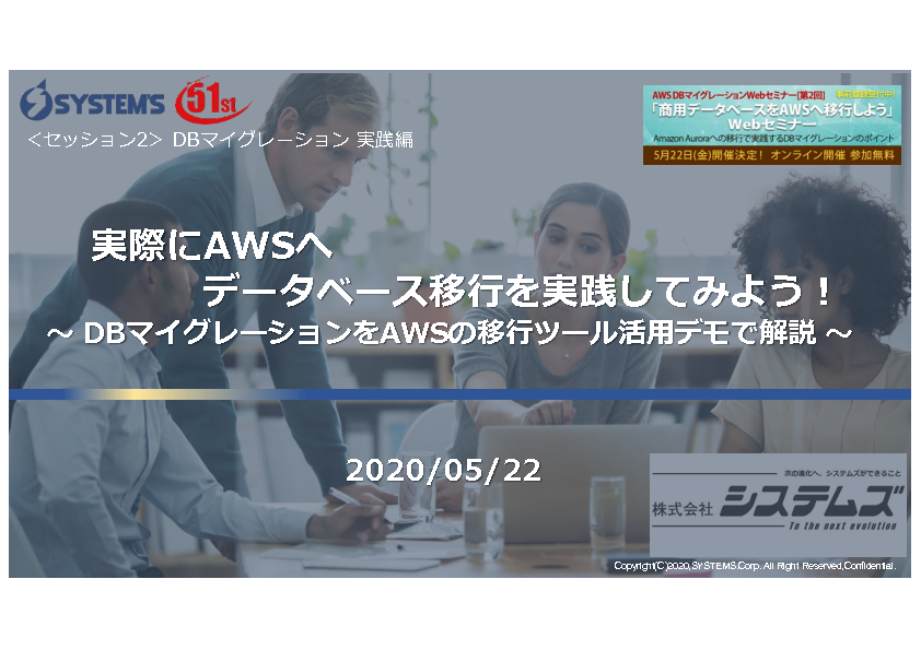 2つめのセッションでは、システムズが長年培ってきたレガシーマイグレーションの経験とノウハウを生かしたDBマイグレーションのポイントを、最新の「脱Oracle」事例に、 AWSに実装されている移行ツールを実際に使った、DB移行デモなどを交えながら解説します。