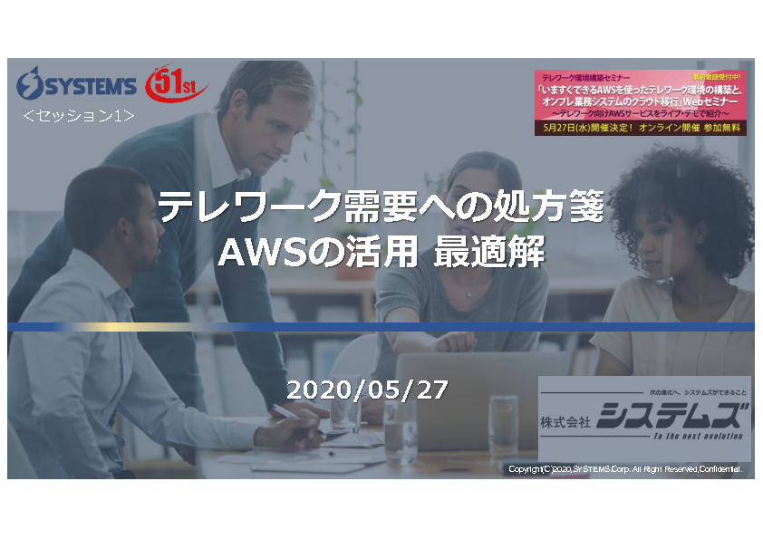 本Webセミナーでは、テレワークを推進する上でのオンプレミス環境にある業務システムの課題と、課題解決に向けた選択肢としてのクラウド移行の方法についても解説します。