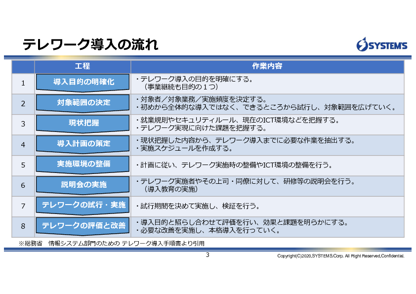 緊急事態宣言が解除された後の事業再開に向けて、経団連からガイドラインが発表される予定ですが、そこでは全ての企業に対してテレワークを導入することを推奨しています。