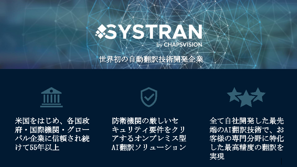 外部翻訳サービス利用での機密情報の漏洩リスクを防ぎながら既存データの学習で専門領域の高精度翻訳を実現 ~セキュアなオンプレミス環境で汎用的な翻訳から脱却して業務効率化~