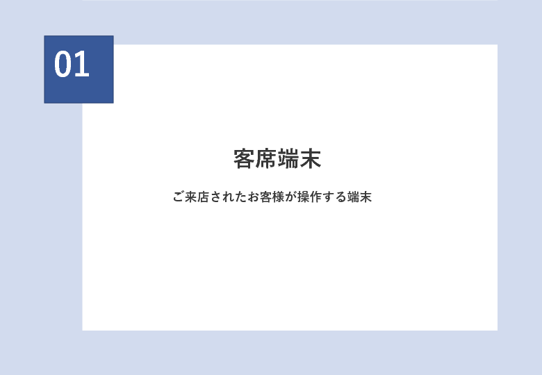 端末の不正利用や紛失などのリスク対策をはじめ、バッテリーの正常な状態やアプリの稼働をウォッチし、正しい運用が行われているなど、お客様の満足される利用体験を継続することで、飲食店のDXを推進と支援をいたします。