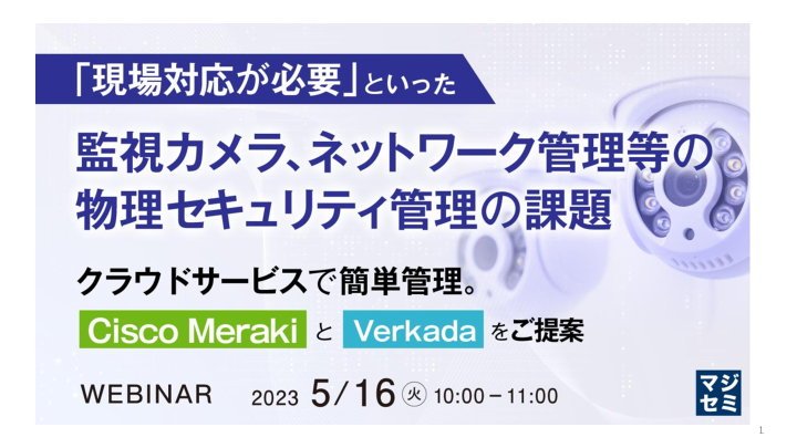 10:05~10:45 「現場対応が必要」という、ネットワークと物理セキュリティの課題 ~クラウドサービスで簡単管理。”Cisco Meraki”と”Verkada”をご提案~