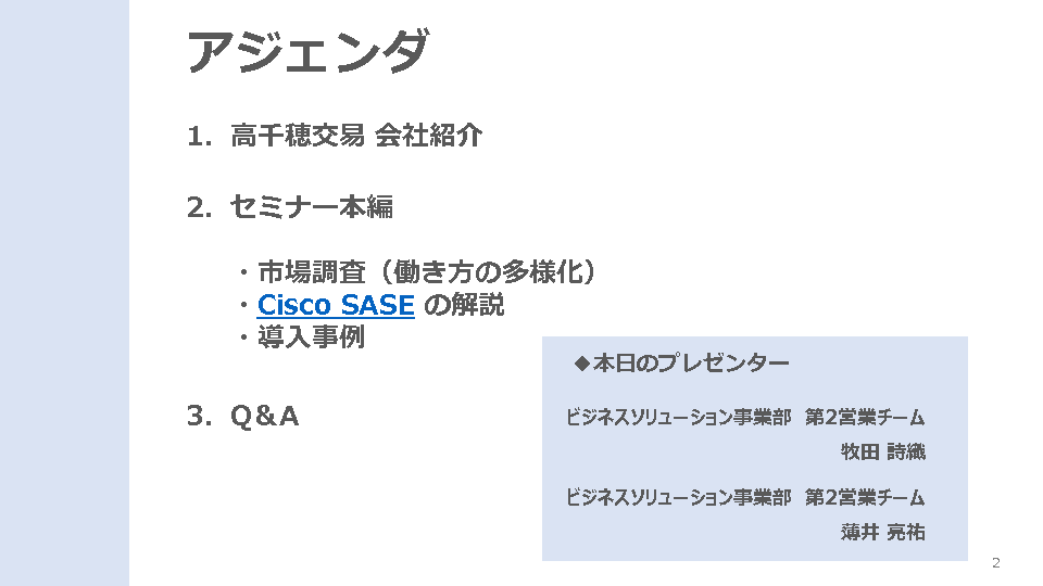 このセミナーでは、「Cisco SASE」を中心に、ネットワークから端末までをカバーする全体的なセキュリティ戦略をご紹介します。