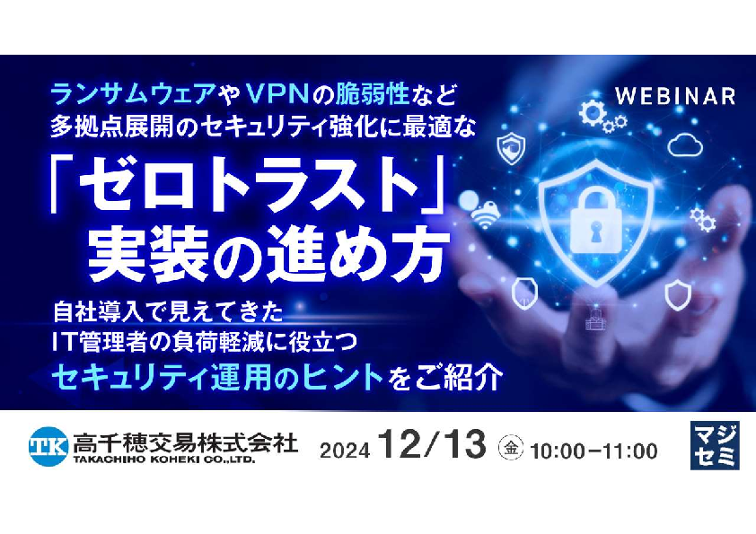 「ゼロトラストの実装をどう進めていけばいいのか分からない」「ランサムウェア、マルウエアなど高度化するサイバー攻撃を防ぎたい」「増え続けるセキュリティ運用の負荷を軽減したい」などとお悩みの方は、ぜひご参加ください。