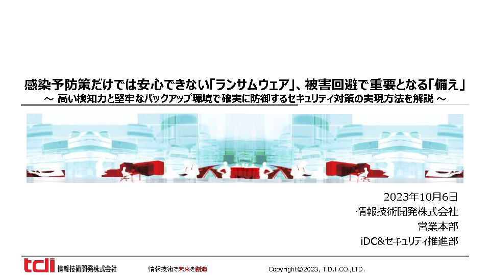 10:05~10:45 感染予防策だけでは安心できない「ランサムウェア」、被害回避で重要となる「備え」 ~ 高い検知力と堅牢なバックアップ環境で確実に防御するセキュリティ対策の実現方法を解説 ~
