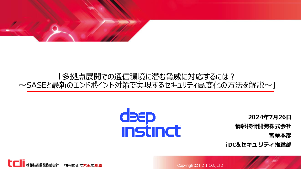 本セミナーは、国外・国内の多拠点で事業を展開する企業・組織の情報システム部門、インフラ運用部門、セキュリティ運用部門の担当者の方を対象に、多拠点展開における通信環境に潜む脅威への対策、ちぐはぐなセキュリティレベルを統一するゼロトラスト・セキュリティを実現する方法を提案します。さらに、具体的な解決策として、SD-WANとネットワークセキュリティを統合するSASEと最新のサイバー攻撃に対抗できるエンドポイント対策を組み合わせた「多層型防御」の実践方法を、ユースケースや競合比較などを交えて解説します。