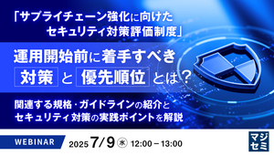 12:05~13:00 「サプライチェーン強化に向けたセキュリティ対策評価制度」:運用開始前に着手すべき対策と優先順位とは?~関連する規格・ガイドラインの紹介と、セキュリティ対策の実践ポイントを解説~