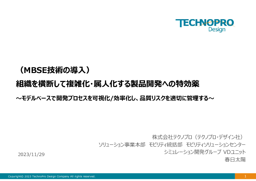 (MBSE技術の導入)組織を横断して複雑化・属人化する製品開発への特効薬 ~モデルベースで開発プロセスを可視化/効率化し、品質リスクを適切に管理する~