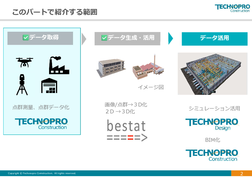 本セミナーでは、製造ラインの3Dシミュレーション構築を円滑に進めるために、現地測量から点群取得、AIによる高精度3D化、シミュレーション活用までを一気通貫で捉えた実践的なアプローチを解説します。点群データは取得方法や測量設計の段階で品質が大きく左右されるため、後工程で手戻りを発生させないための測量時の考え方や注意点にも触れながら、AIを活用し、精度・軽量化を満たした“シミュレーションに適した3D”へ短期間で変換するプロセスを具体的に紹介します。さらに、将来的なOmniverse連携を見据えたデータ構造や精度の考え方を整理し、PoCにとどまらず、設備保全業務に実装可能な3Dシミュレーション基盤をどのように構築すべきかを明確にします。