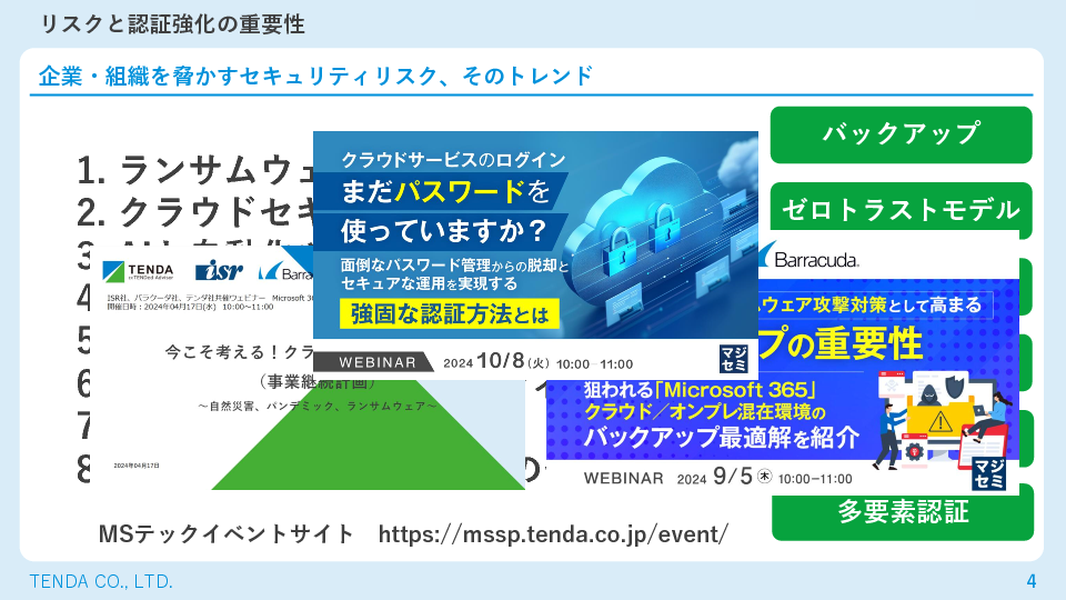 クラウドサービスやグループウェアの利用に課題を感じている方、シングルサインオンの導入を行っているがセキュリティへの課題を感じている方に特におすすめの内容です。
