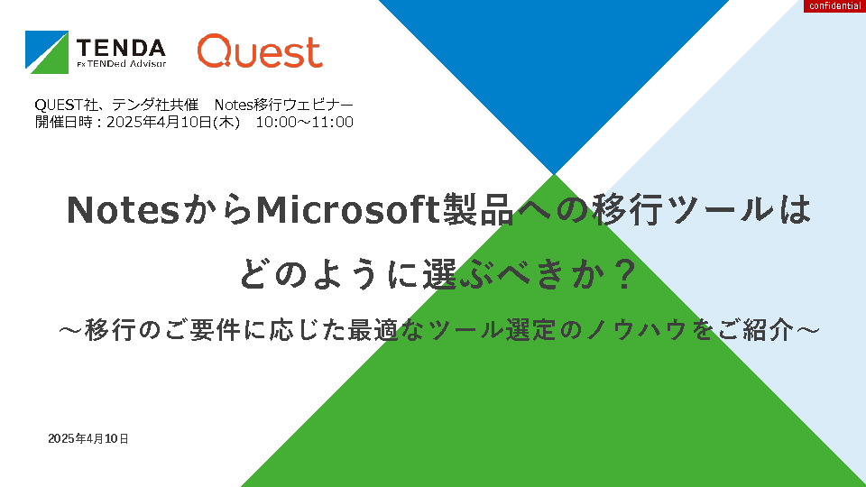 10:05~10:45 NotesからMicrosoft製品への移行ツールはどのように選ぶべきか? 〜移行のご要件に応じた最適なツール選定のノウハウをご紹介~