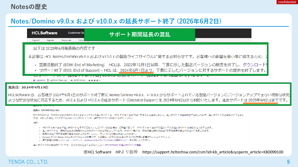 HCL社は、2024年6月1日にNotes/Domino V9.0、V10のサポートを終了すると発表しましたが、その後、2026年6月2日までの延長サポートとなりました。