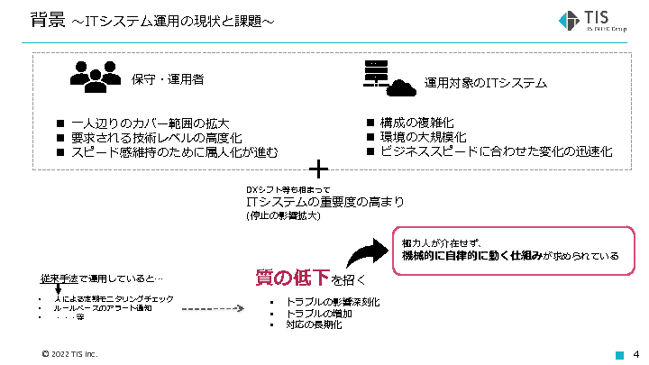DXやクラウド化が進む中、IT管理者は複雑化・大規模化するシステムを監視し、迅速かつ適切に保守・運用することが求められています。
