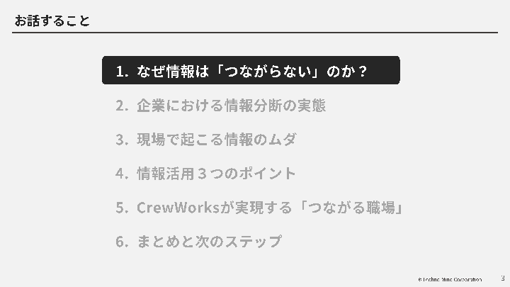 13:05~13:45 会議・チャット・ファイル――バラバラな情報をつないで活用したい 〜AIが分散した情報を一元管理・構造化、使うだけで進化する All in One ナレッジ基盤〜