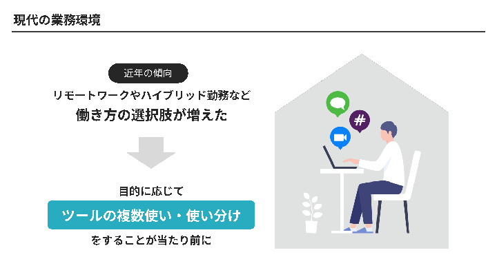 チャットも会議もファイル共有も整っているはずなのに、「あの話、どこで出た?」「最新の資料はどれ?」という会話が絶えない。SlackやTeamsなど複数ツールを使いこなしていても、必要な情報を探すのに時間がかかり、引き継ぎもうまくいかない。情報共有はできているのに、なぜか効率が上がらない──多くの企業で生じているこの“もやもや”は、情報が分散していることに気づかないまま業務を進めていることが原因です。日々のやり取りや会議記録が整理されず、結果的にチーム全体での知識の共有や再利用が進まないという課題が顕在化しています。