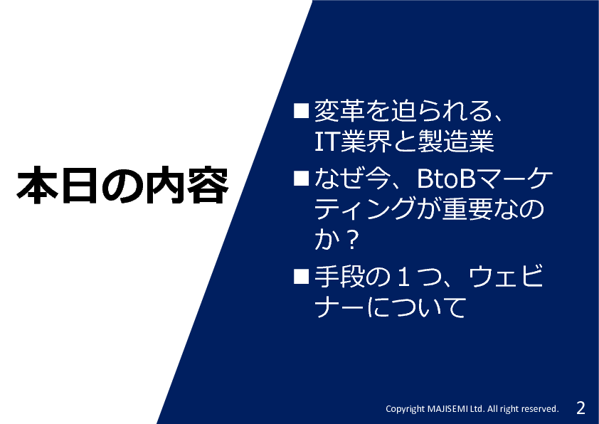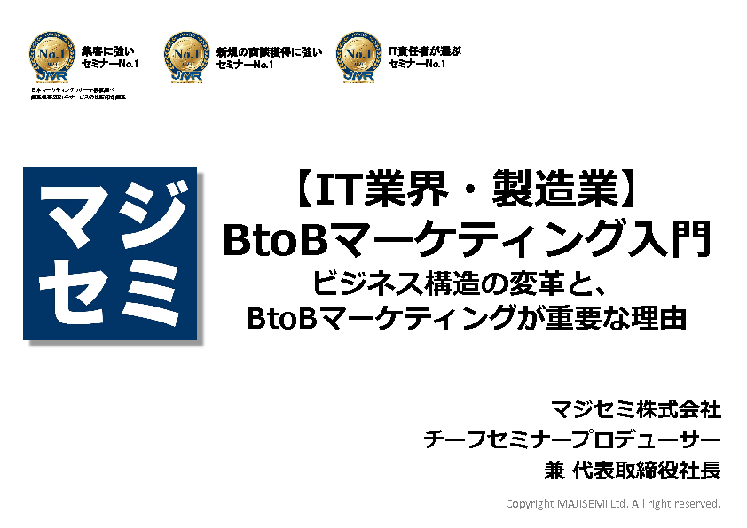 本セミナーでは、これからBtoBマーケティングに取り組む企業に対して、わかりやすく入門解説致します。