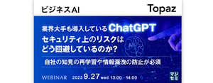 本セミナーでは、セキュリティ上のリスクを回避したChatGPTの導入と、社内での活用促進のポイントを解説しながら、Topaz社の「ビジネスAI」を紹介します。