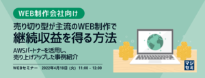 14:05~14:45 【WEB制作会社向け】売り切り型が主流のWEB制作で継続収益を得る方法〜AWSパートナーを活用し、売り上げアップした事例紹介〜