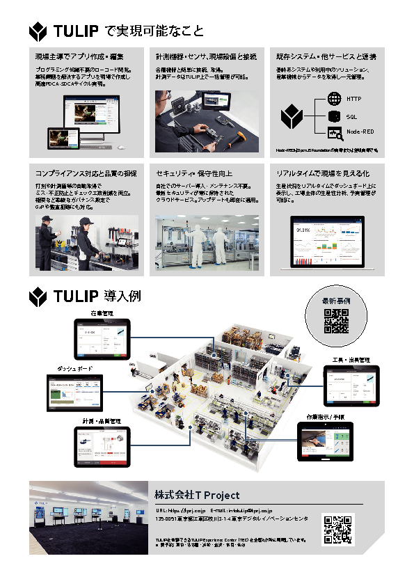 「TULIP」は、製造現場DXを促進するための、現場が独自にカスタマイズできるローコードアプリ開発とデータ収集・分析を可能にするクラウドプラットフォームです。その高い自由度により、従来のツールでは対応できなかったシステム化や製造現場のあらゆるIoT機器とのデータ連携、ERPや生産管理システムなどの上位システムとの連携まで多岐にわたる機能を実現します。これにより、現場が主導する取り組みを支援しつつ、最終的に組織全体を横断する改革を実現することができます。