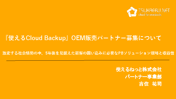 本ウェビナーでは、注目を集めている商材である、クラウド型バックアップソリューションを販売代理店として拡販していただけるパートナーを募集いたします。