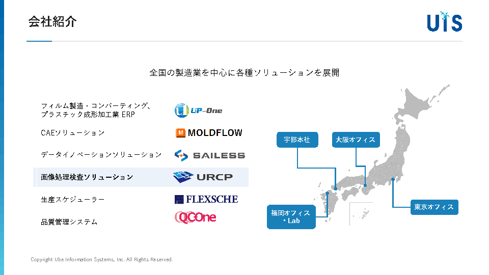 宇部情報システムは、UBE株式会社の情報システム部門より設立された背景から、長年にわたり製造業向けのシステム構築・運営技術を蓄積してきました。外観検査システムにおいても、検査自動化に向けたサンプル評価から最適な照明条件の選定、検査装置の設計・組立・納品まで一貫してサポートしています。
