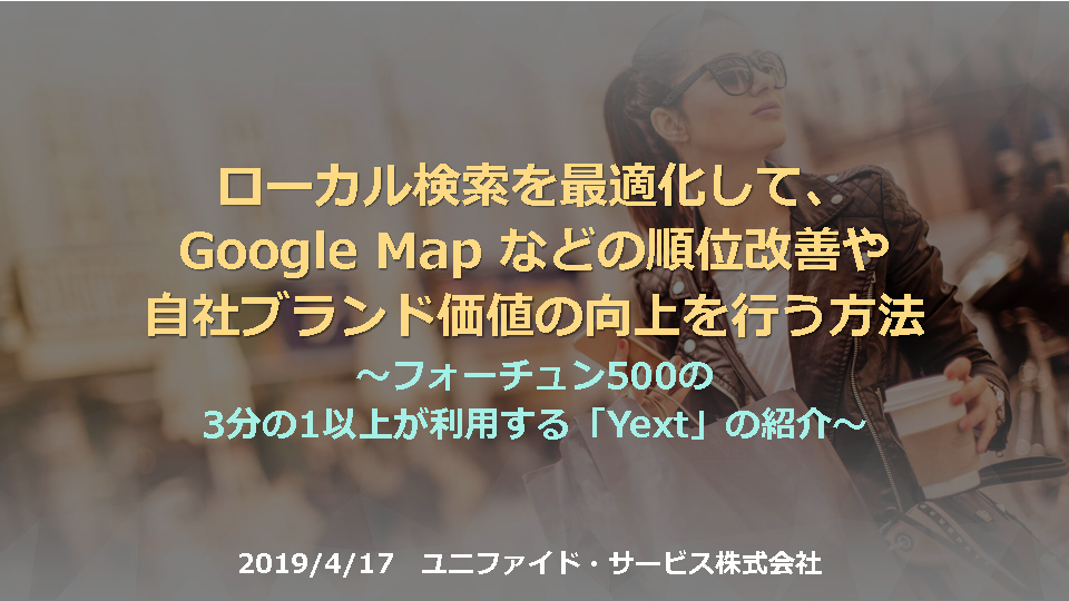 本セミナーでは、「Yext」を利用して、効率よくローカル検索を最適化し、自社ブランド価値および集客パフォーマンスを向上させる方法、特に近年増えているインバウンドへの対策方法なども交えてご紹介致します。