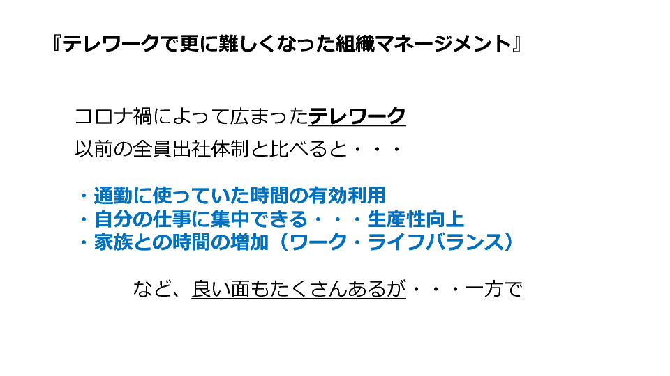 そして、その中でも「組織マネジメント」が難しくなっているのが現状です。