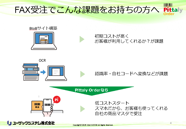 手書きFAXによる受注は、文字の読み違いや記載ミス、社内システムへの転記時の入力ミスといったヒューマンエラーが発生しやすく、それが発注ミス・納品ミス・クレームの原因となっています。