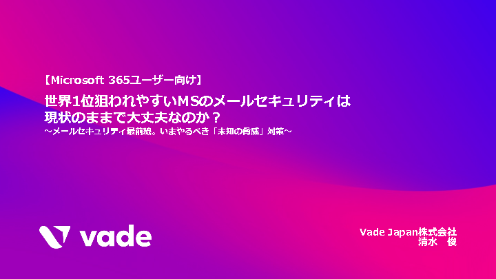 本セミナーでは「Microsoft365メールセキュリティ」をテーマに、最新のメールセキュリティ課題、未知の脅威を防ぐ方法を解説いたします。