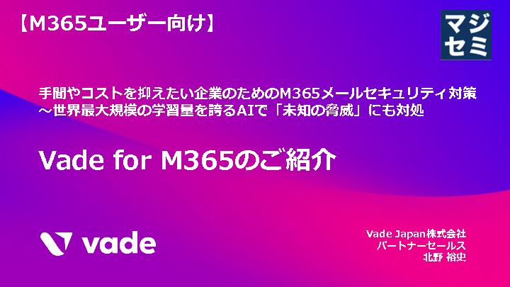 本セミナーでは「Microsoft365メールセキュリティ」をテーマに、最新のメールセキュリティ課題、未知の脅威を防ぐ方法を解説いたします。