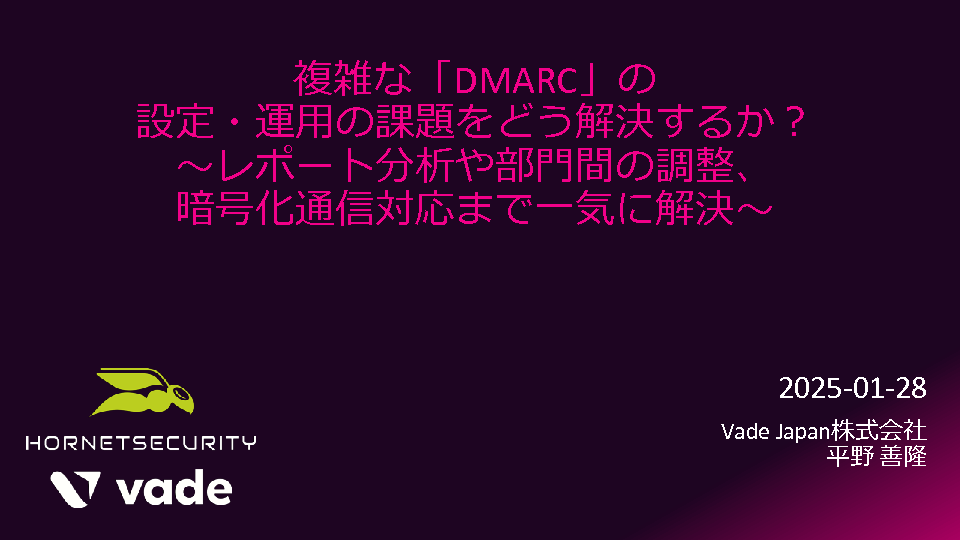 11:05~11:45 複雑な「DMARC」の設定・運用の課題をどう解決するか?~レポート分析や部門間の調整、暗号化通信対応まで一気に解決~