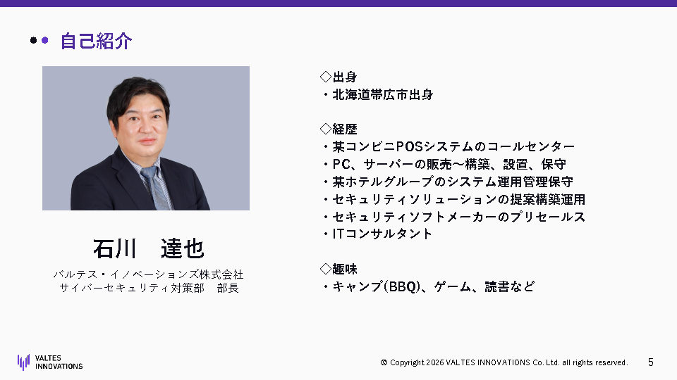 本セミナーでは、 バルテスグループが13年以上にわたり提供してきた脆弱性診断 の実績をもとに、Web/モバイル/IoTを含む幅広いシステムを対象として、ツール診断に手動診断を組み合わせることで、 認証・認可の不備やアクセス制御、業務ロジックに起因する問題 など、事故につながりやすい脆弱性を洗い出すプロセスを紹介します。また、近年実際に発生したセキュリティ事案を踏まえ、どのような脆弱性が被害につながったのか、その背景や見落とされやすいポイントについても解説します。さらに、診断結果を一覧で終わらせず、修正方針まで整理した報告書の活用方法や再診断の重要性にも触れながら、来年度の予算取りや中長期的な対策検討につなげるための、実効性ある脆弱性診断の進め方をお伝えします。
