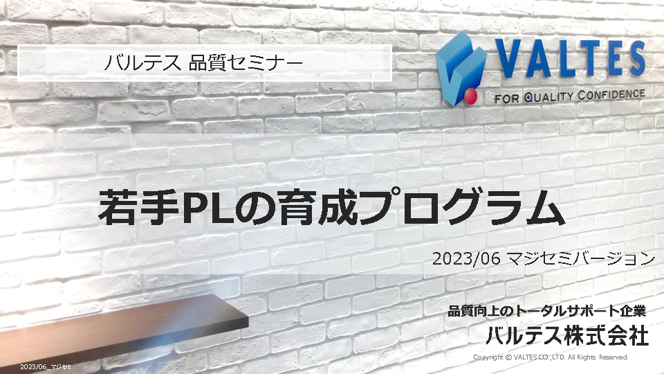 バルテス株式会社では、品質セミナーの一環として「若手PLの育成プログラム」セミナーを提供する予定です。