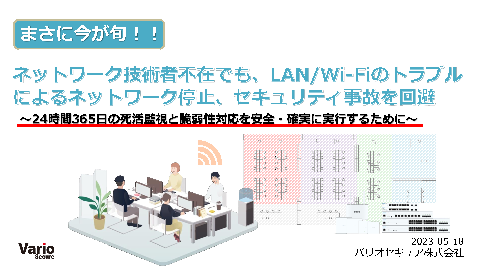 ネットワーク技術者不在でも、LAN/Wi-Fi機器トラブルによるネットワーク停止、セキュリティ事故を回避 ~24時間365日の死活監視と脆弱性対応を安全・確実に実行するために~