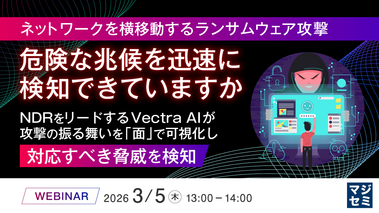 13:05~13:45 ネットワークを横移動するランサムウェア攻撃、危険な兆候を迅速に検知できていますか~NDRをリードするVectra AIが攻撃の振る舞いを「面」で可視化し対応すべき脅威を検知~