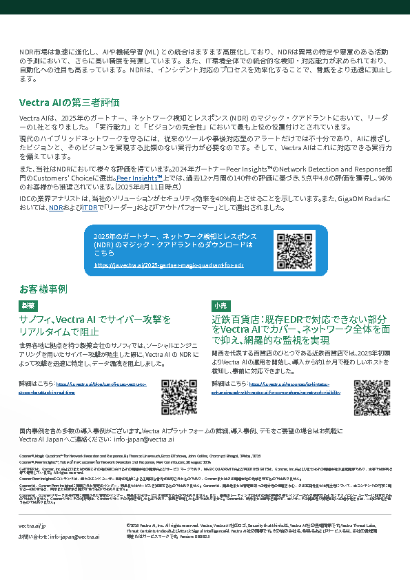 ガートナー認定のNDRリーダーVectra AIが攻撃を「面」で可視化し対応すべき脅威を検知