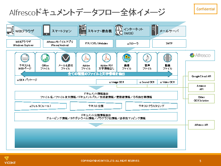 本セミナーでは、社内に散在する文書をAlfrescoに統合し、自動的に分類、タグ付けし、かつ高度な検索エンジンを提供することで、価値ある「ナレッジ」として活用する方法を、一部事例も交えながら解説します。