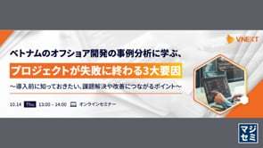 本セミナーは「オフショア開発で失敗したくない、どうすればうまくいくのか」と悩む企業の方に向けて、失敗事例を独自に分析して判明した失敗の3大要因を解説いたします。