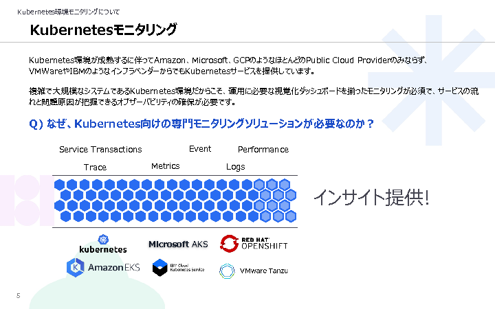 11:05~11:50 Kubernetesモニタリングの複雑さを解消する方法~クラスタからアプリ、ログまで一気通貫で可視化~