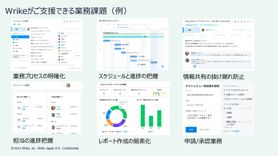 本セミナーでは、さまざまな業務情報を一元的に管理・可視化するだけでなく、リアルタイムでお好みのレポートを即時に生成でき、社内外との情報共有や進捗管理の効率化に貢献するソリューション「Wrike」の活用ポイントをご紹介します。