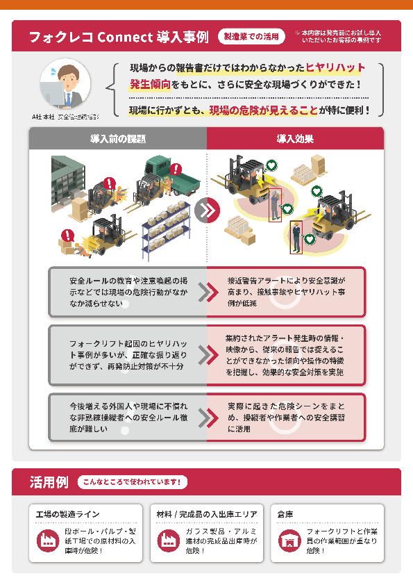 フォークリフト事故を防ぐために、今すぐ取り組むべき「安全対策」 ~ヒヤリハットのシーンを見える化 人物検知技術搭載のカメラシステムで現場の危険回避と対策検討に~