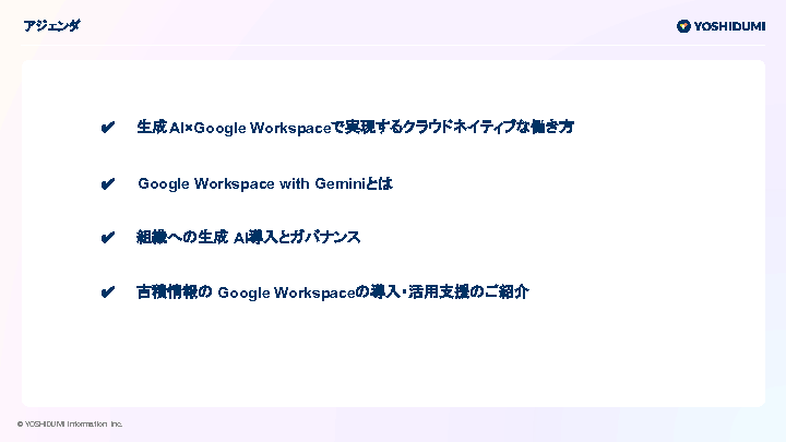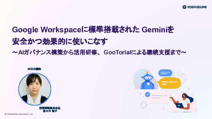 14:05~14:45 Google Workspaceに標準搭載されたGeminiを安全かつ効果的に使いこなす ~AIガバナンス構築から活用研修、GooTorialによる継続支援まで~