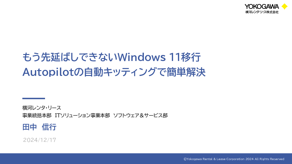 本セミナーでは、Windows Autopilotを活用したゼロタッチキッティングと、PC調達から展開、運用までを一貫してサポートするアウトソーシングサービスをご紹介します。100万台を超えるレンタルPC資産の運用管理実績を持つ当社だからこそ提供できる、大規模環境に最適な移行手法をご説明します。Autopilotによる自動化とアウトソーシングの組み合わせにより、従来は数週間を要していた展開作業を大幅に効率化。Windows 11移行を契機に、情シス部門の働き方改革を実現する方法を、具体的な導入事例を交えながらご説明いたします。