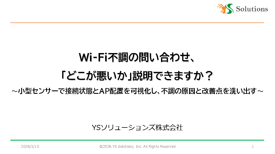 本セミナーでは、小型センサーを現地に一定期間設置し、実際の利用者と同じ目線で接続状態を計測するWi‑Fiアセスメントサービスをご紹介します。センサーが自動的に各SSIDへの接続可否やスループット、ローミングの挙動などを継続的に記録し、その結果をもとに「どのエリアでボトルネックが発生しているのか」「どのAPが過負荷になっているのか」「野良APや想定外の電波がどこから出ているのか」を可視化します。これにより、現場の感覚に頼らずに、不調の原因と改善すべきポイントを明確化し、AP増設やチャネル再設計、セキュリティ対策など具体的な打ち手へとつなげるまでのプロセスを、実際の活用事例を交えながら解説します。