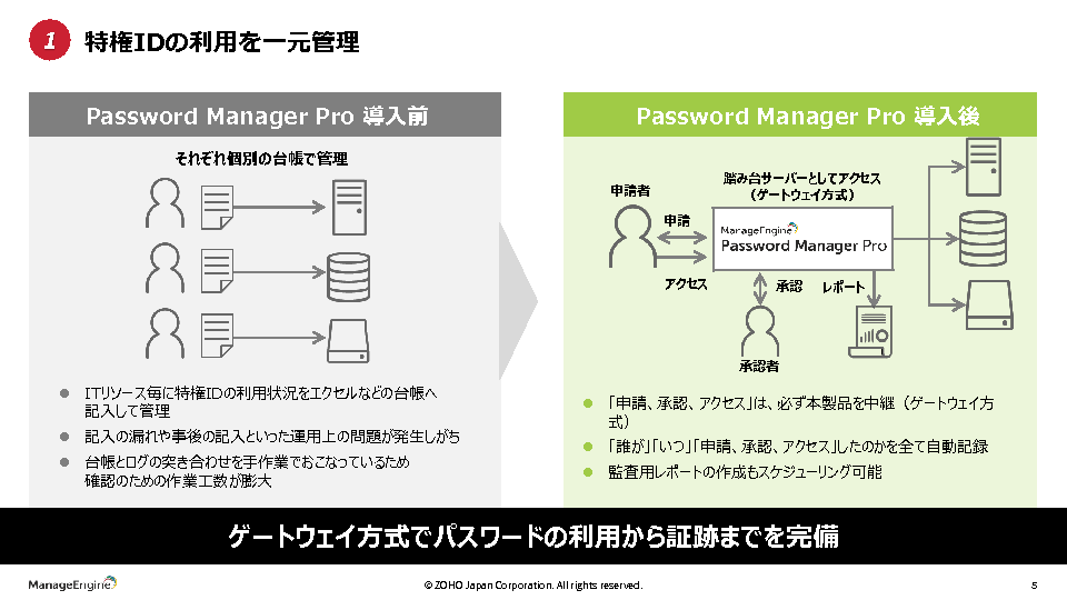 Password Manager Proは、特権IDの管理を効率化し、内部不正を防ぐための多機能を備えたソフトウェアです。低コスト、低負荷でありながら高度なセキュリティの実現が可能です。