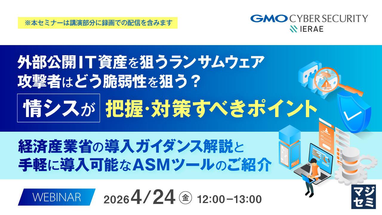 外部公開IT資産を狙うランサムウェア、攻撃者はどう脆弱性を狙う? 情シスが把握・対策すべきポイント ~経済産業省の導入ガイダンス解説と、手軽に導入可能なASMツールのご紹介~お申し込み