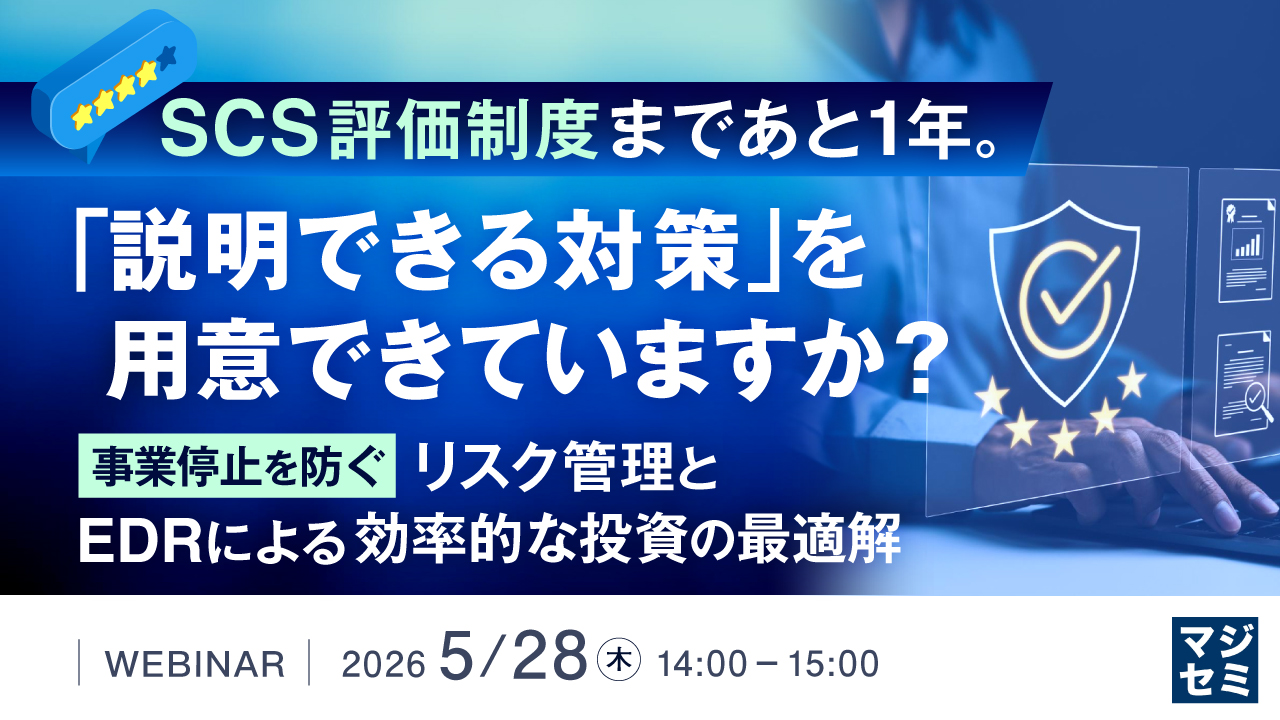 SCS評価制度まであと1年。「説明できる対策」を用意できていますか? 〜事業停止を防ぐリスク管理と、EDRによる効率的な投資の最適解〜お申し込み